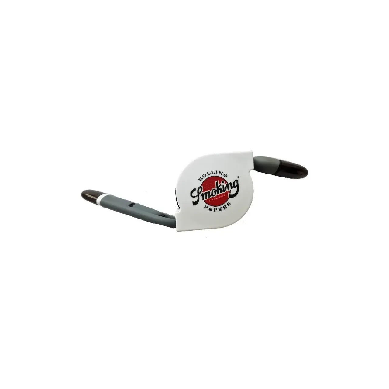 Cable retráctil 2 en 1 con carga rápida y diseño compacto. Compatible con iPhone y Micro USB, ideal para uso diario y fácil de transportar. Personalizable con logo, disponible en blanco, negro y celeste.