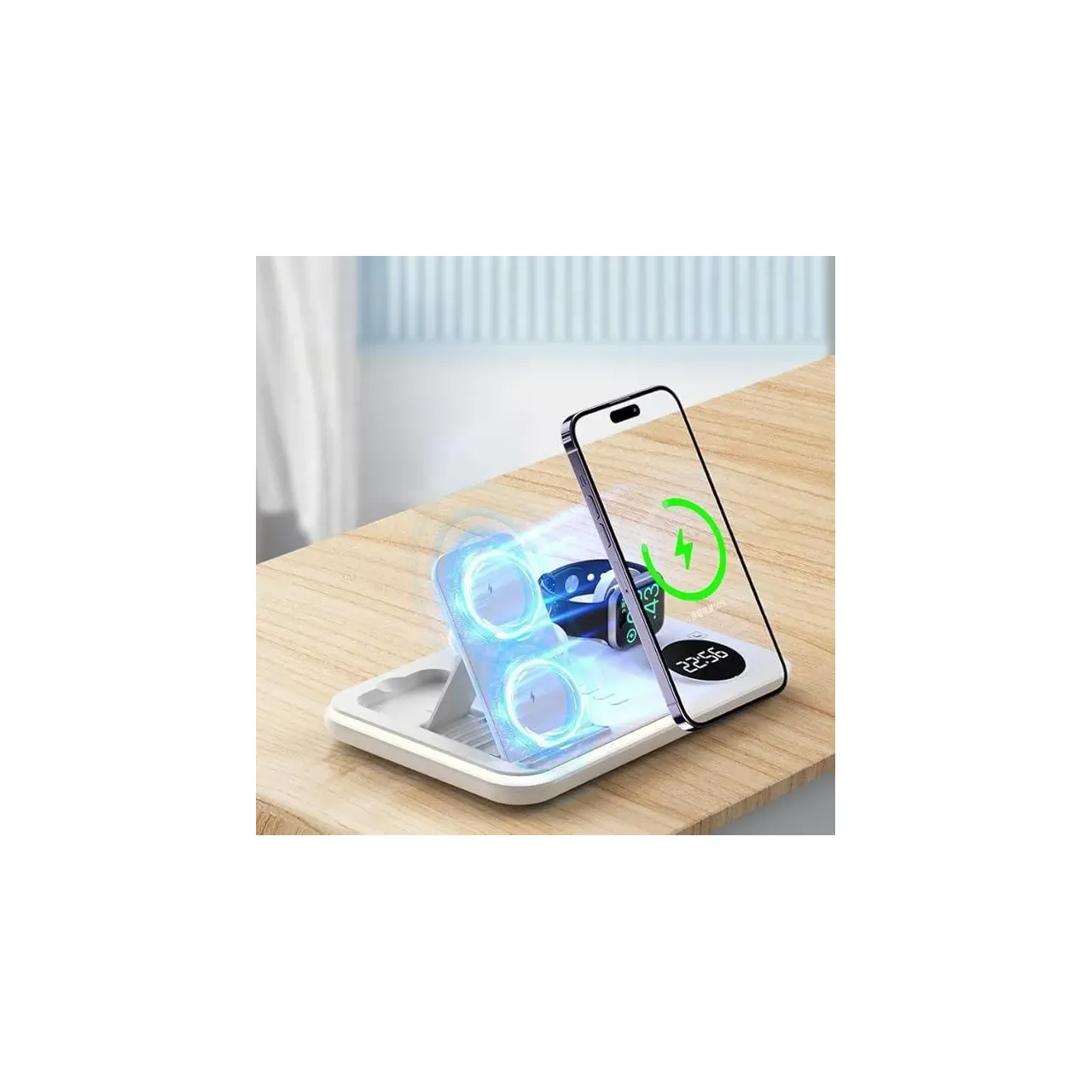 Descubre la solución perfecta para mantener todos tus dispositivos cargados y organizados con estilo. Este innovador cargador inalámbrico 5 en 1 combina funcionalidad y diseño moderno para adaptarse a tus necesidades.
