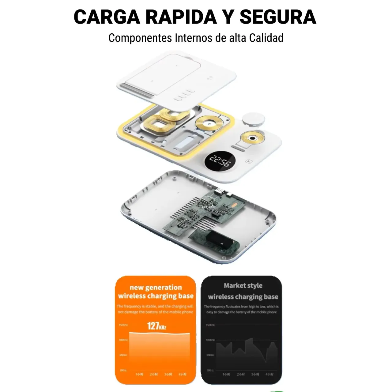 Dale un toque moderno y funcional a tu vida con este cargador inalámbrico 5 en 1.