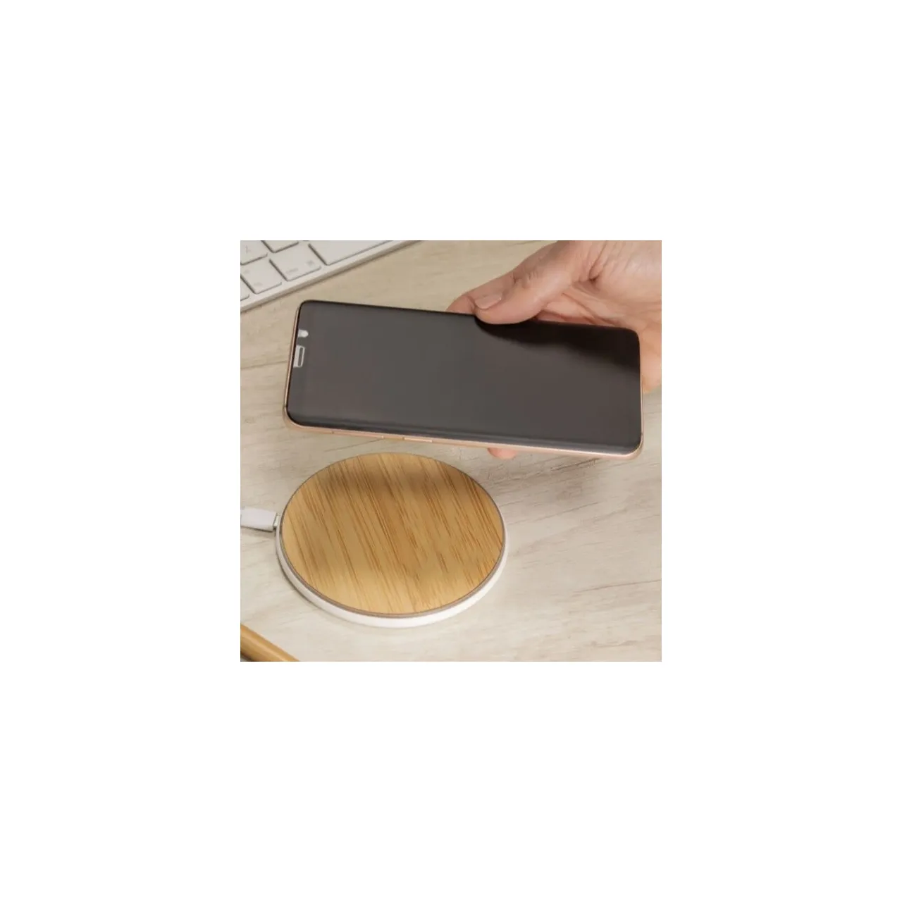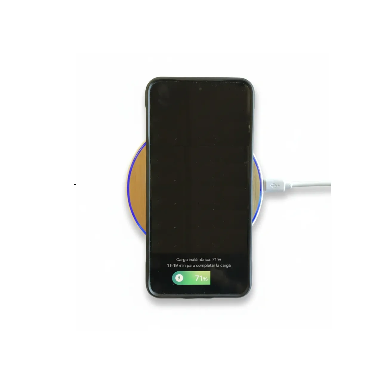 El Cargador Inalámbrico de Bambú 15 W combina tecnología moderna con un diseño natural y ecológico, ideal para escritorios, oficinas o mesas de noche.