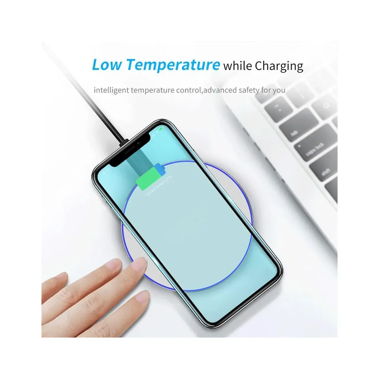 Cargá tu smartphone sin cables con esta base inalámbrica Qi de 15W. Compatible con Samsung, iPhone y otros dispositivos con tecnología Qi. Rápida, segura y con indicador LED.