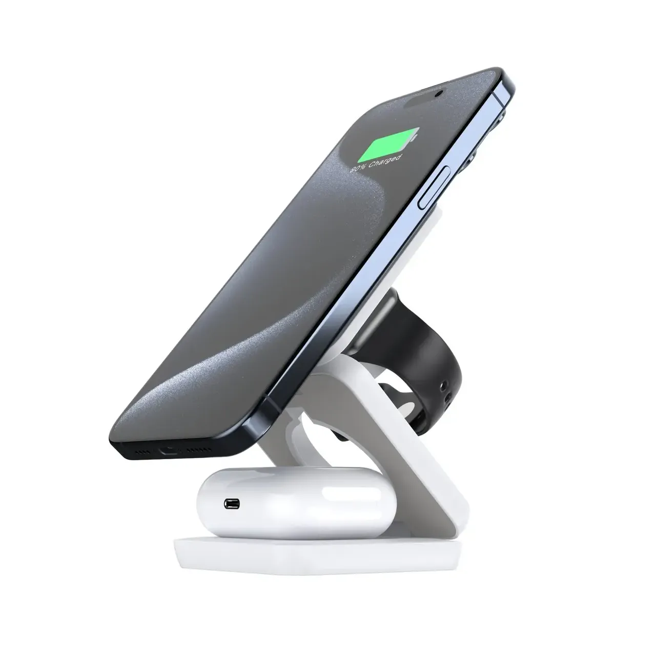Carga tu teléfono, auriculares y reloj simultáneamente con el Cargador Magnético W900, diseñado para máxima comodidad y eficiencia.