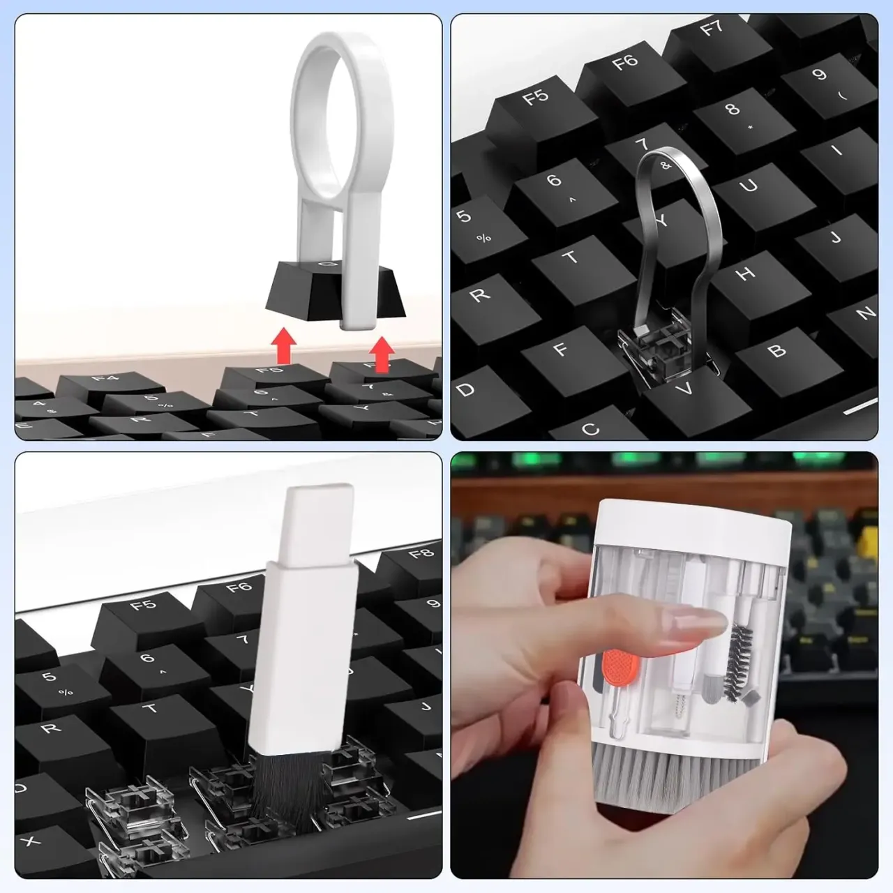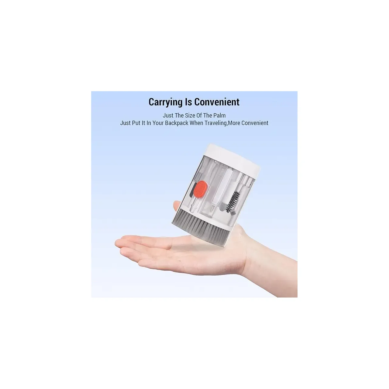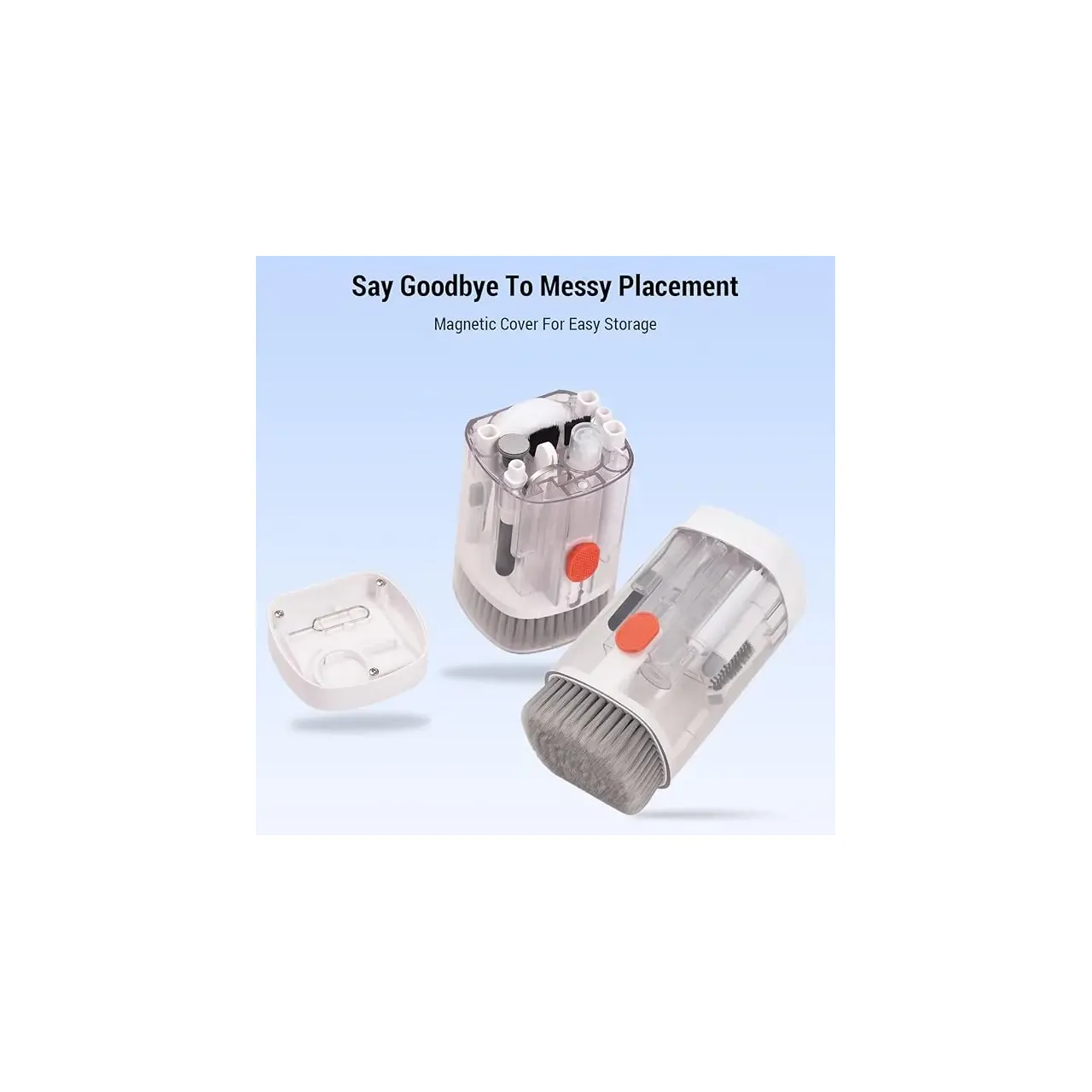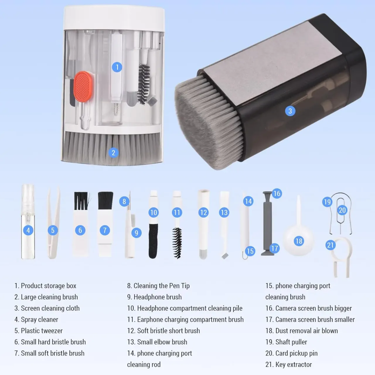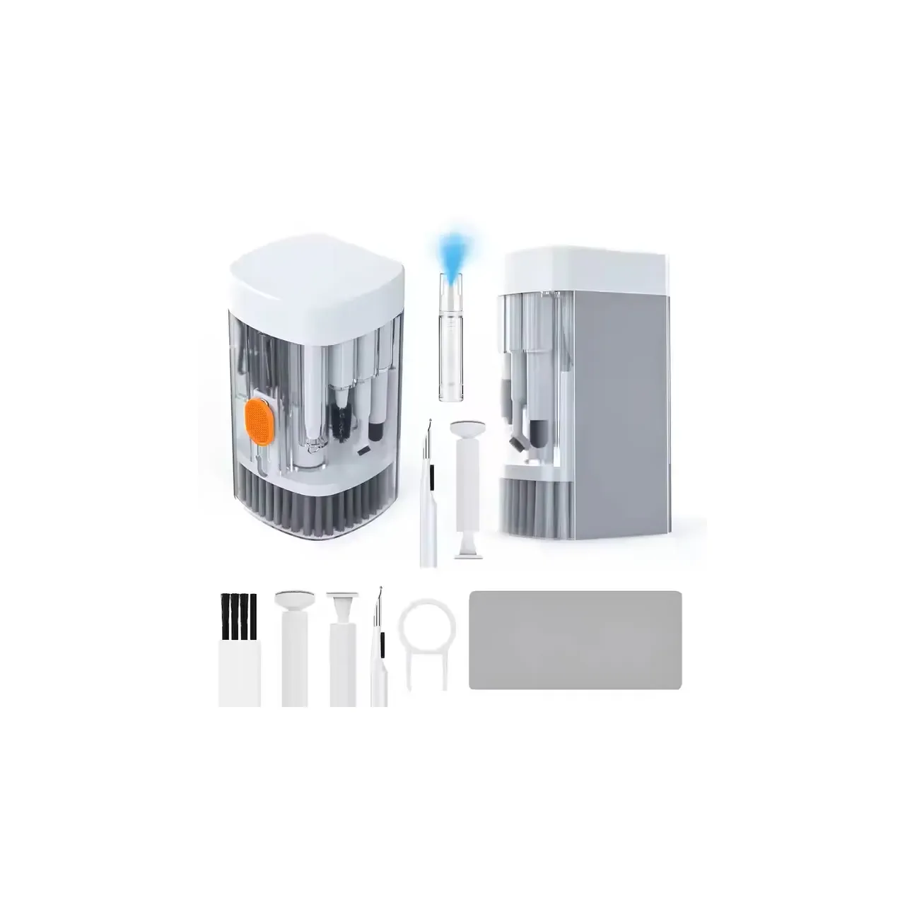 Kit de Limpieza 20 en 1 compacto y completo, ideal para mantener tus dispositivos electrónicos impecables. Con diseño transparente, incluye 20 herramientas especializadas para limpieza profunda de celulares, cámaras, teclados y más. Práctico, portátil y duradero.