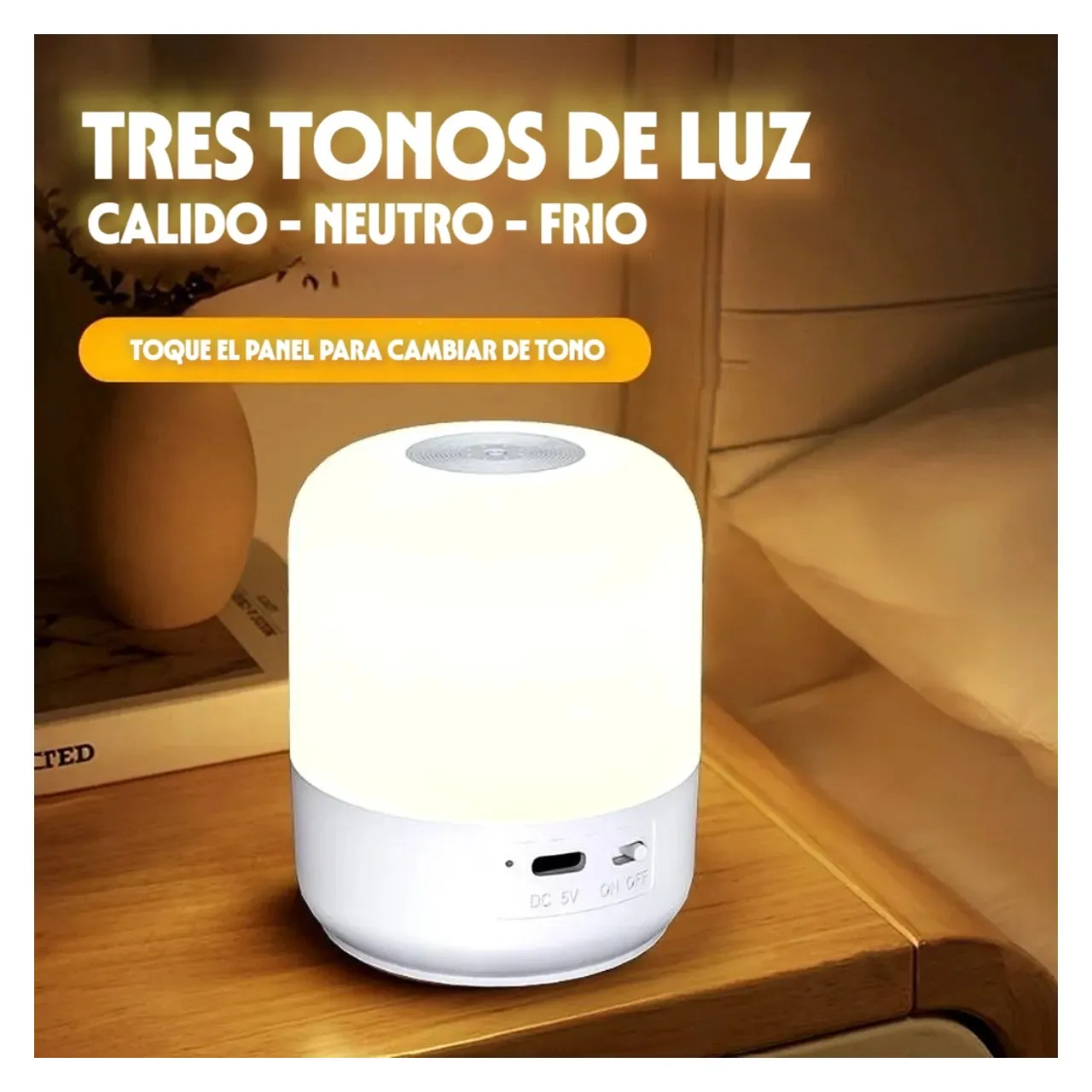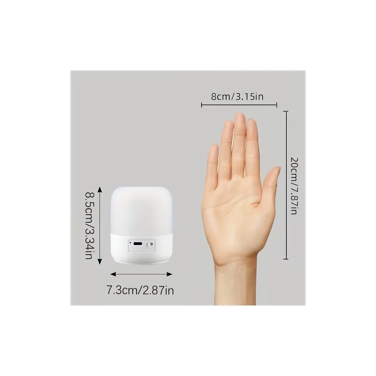 Lámpara LED táctil recargable con 3 tonos de luz (cálida, neutra y fría). Cuenta con batería de litio integrada, control táctil, regulación de intensidad y práctico gancho para colgar. Diseño portátil con protección IP55, ideal para uso en interiores o camping.