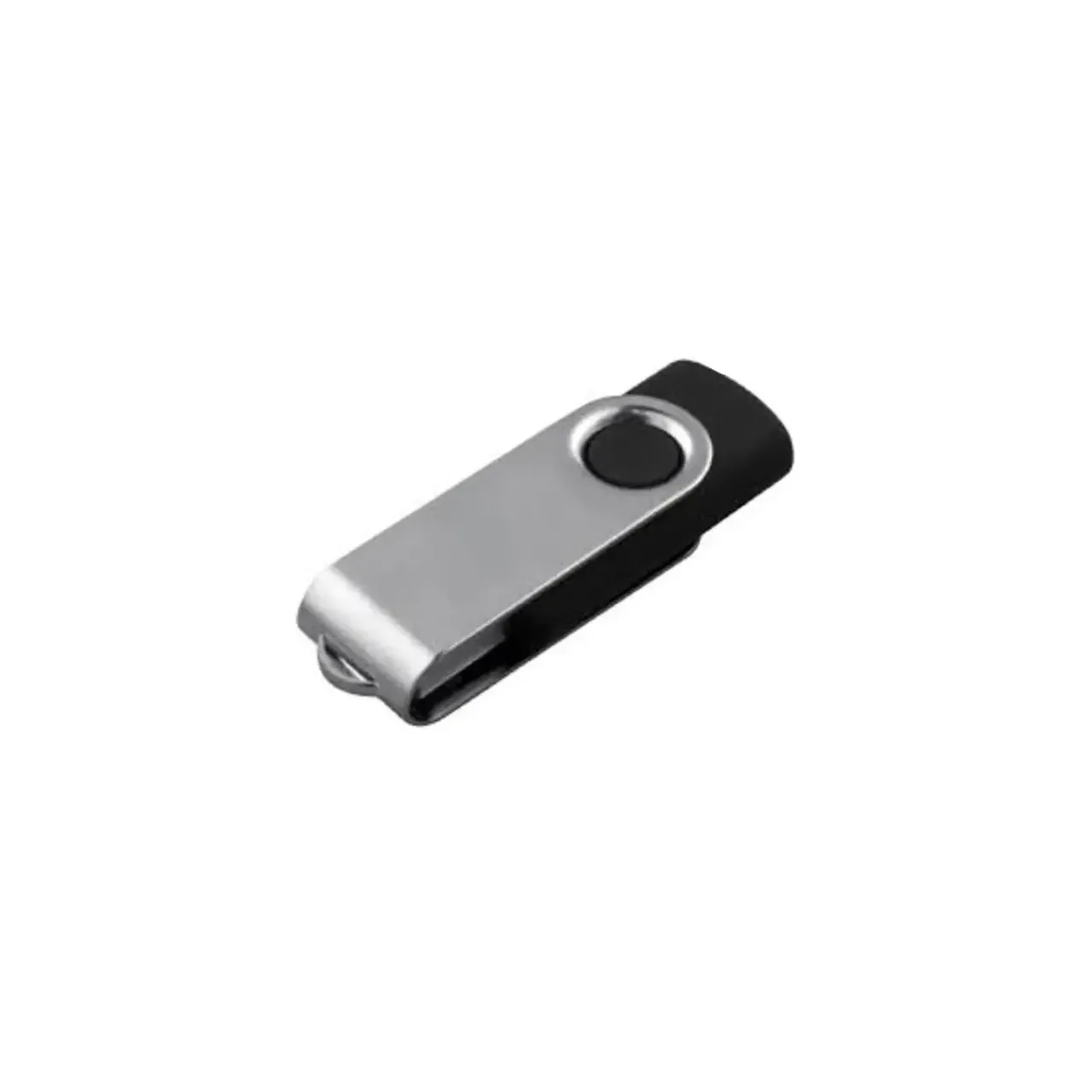Pen Drive giratorio de 8GB: compacto y elegante con cuerpo negro y tapa metálica plateada. USB 2.0 confiable y memoria Grado A de marcas líderes. Ideal para transportar y proteger tus datos esenciales con estilo y seguridad.