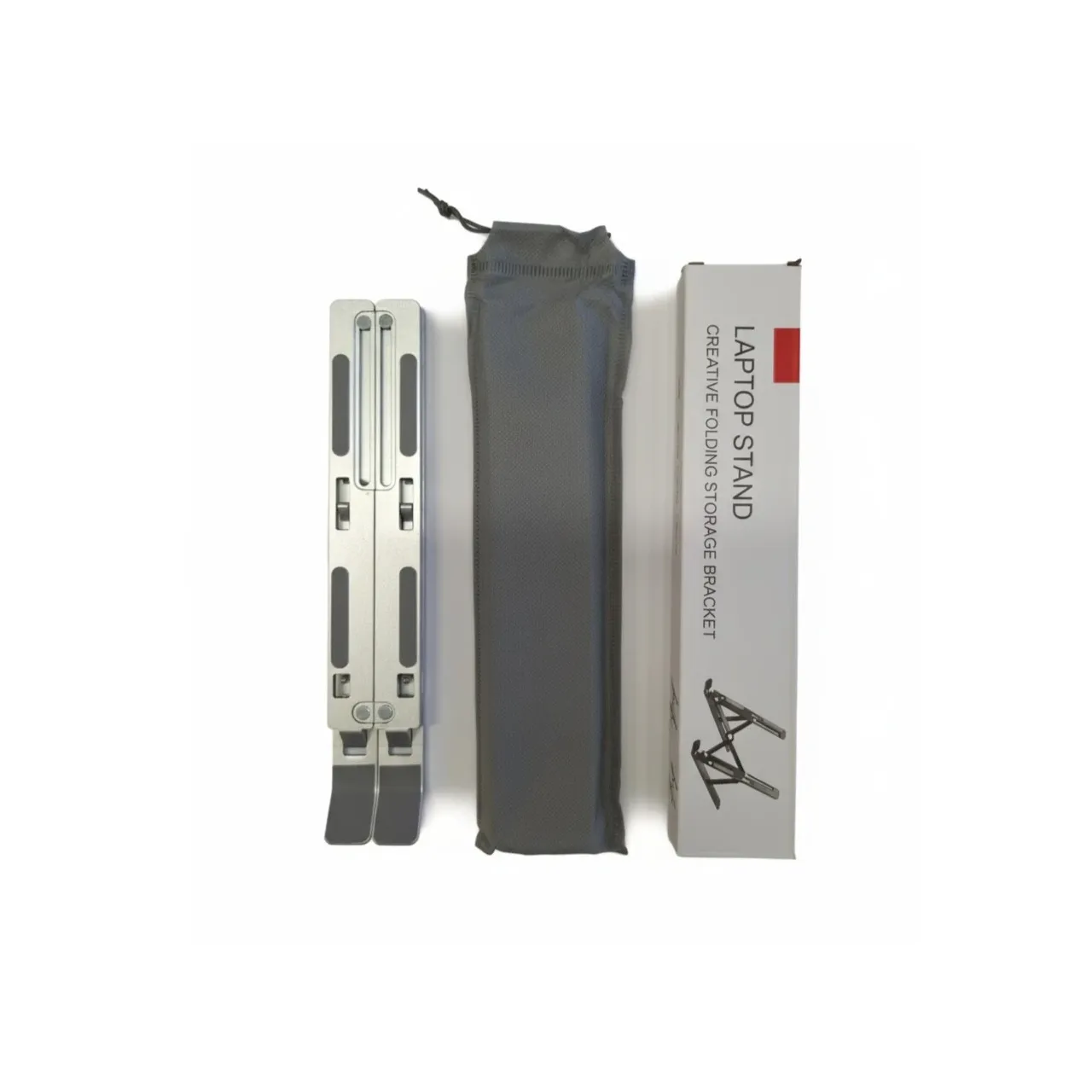 Soporte para Notebook X11 ajustable y portátil, fabricado en aluminio resistente. Mejora la postura, optimiza la ventilación y protege tu equipo con almohadillas antideslizantes. Compatible con notebooks de 10” a 15.6”. Incluye bolsa de transporte y packaging.
