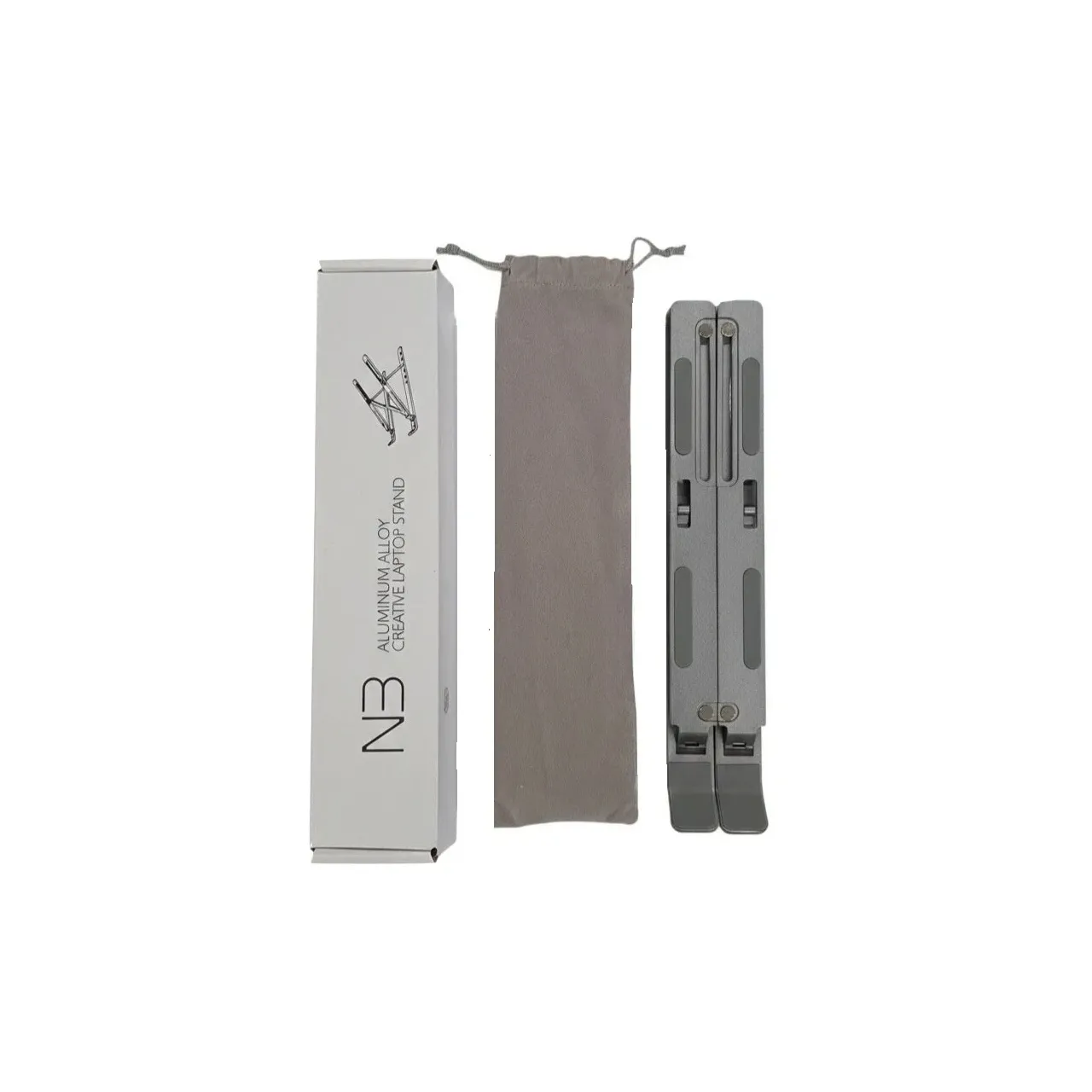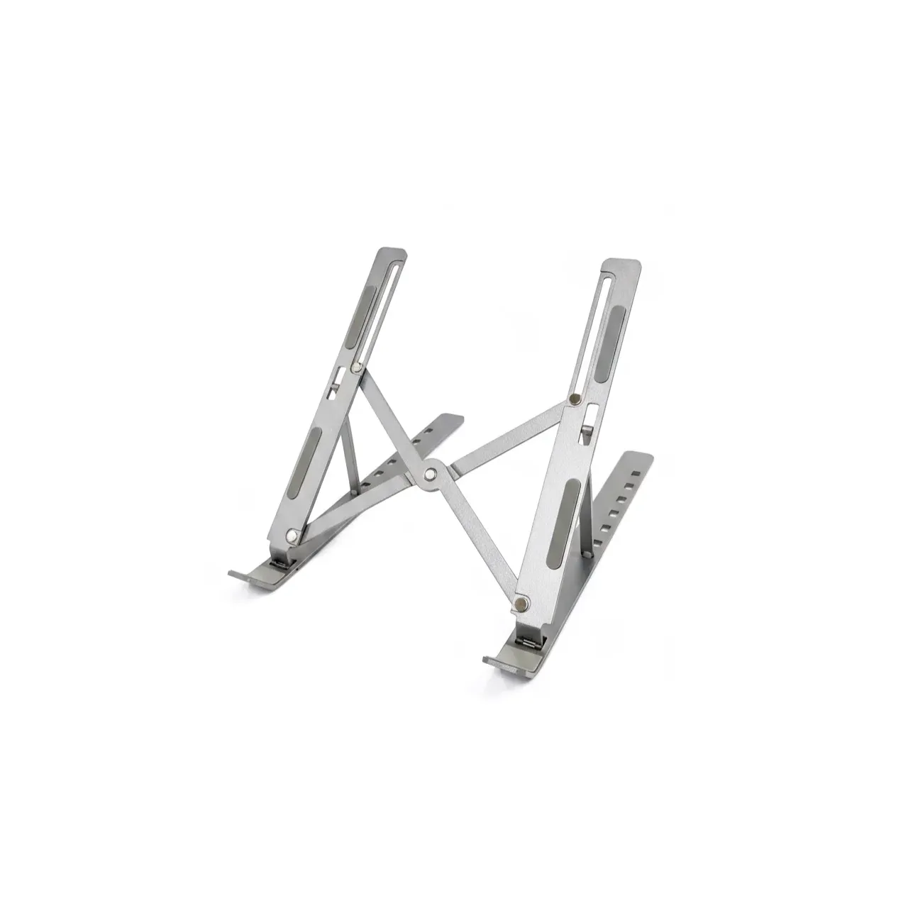 Soporte para Notebook X12B color Gris Mate ajustable y portátil, fabricado en aluminio resistente. Mejora la postura, optimiza la ventilación y protege tu equipo con almohadillas antideslizantes. Compatible con notebooks de 10” a 15.6”. Incluye bolsa de transporte y packaging.